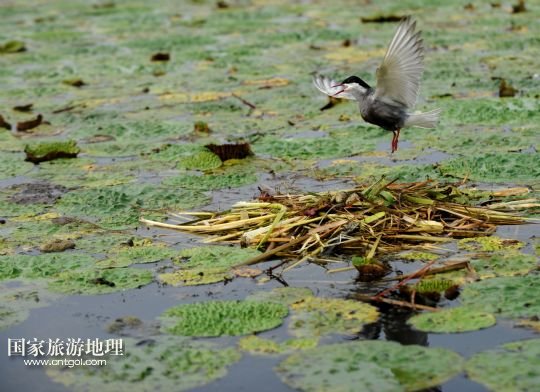 8月3日,那木斯萊濕地,須浮鷗在哺育幼鳥。