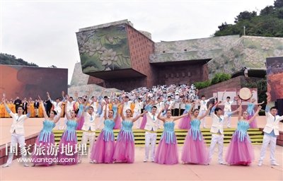 開幕式上,以“慈光千年·與夢同行”為主題的旅游演出《一山·一佛·一世界》,分為序——《慈光·千年》、上篇——《一山·情依舊》、中篇——《一佛·慈天下》、下篇——《一世界·心若在》、尾聲——《與夢·同行》五大段落,通過梵音梵樂、音樂舞蹈等形式,精彩演繹樂山彌勒文化、普賢文化、漢唐風(fēng)韻等文化內(nèi)涵。/三江都市報(bào)