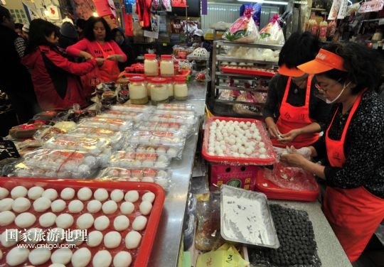12月22日,臺北市南門市場的攤主手工包湯圓,供顧客選購。