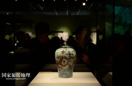國(guó)家旅游地理 北京3月3日訊 3月1日,人們?cè)诮魑奈锞氛股蠀⒂^(guān)明永樂(lè)青花釉里紅云龍紋梅瓶。 當(dāng)日,由江西省委宣傳部、省文化廳主辦的“江西風(fēng)景獨(dú)好”——2014年北京·江西文化月活動(dòng)在北京首都博物館開(kāi)幕。此次活動(dòng)將持續(xù)三個(gè)月,包括江西文物精品展、景德鎮(zhèn)陶瓷藝術(shù)家精品展等4個(gè)展覽及歌劇《回家》、贛劇《荊釵記》等7臺(tái)文藝演出,集中展示江西文化體制改革的重要成果及歷史文化底蘊(yùn)。/新華社記者金良快攝