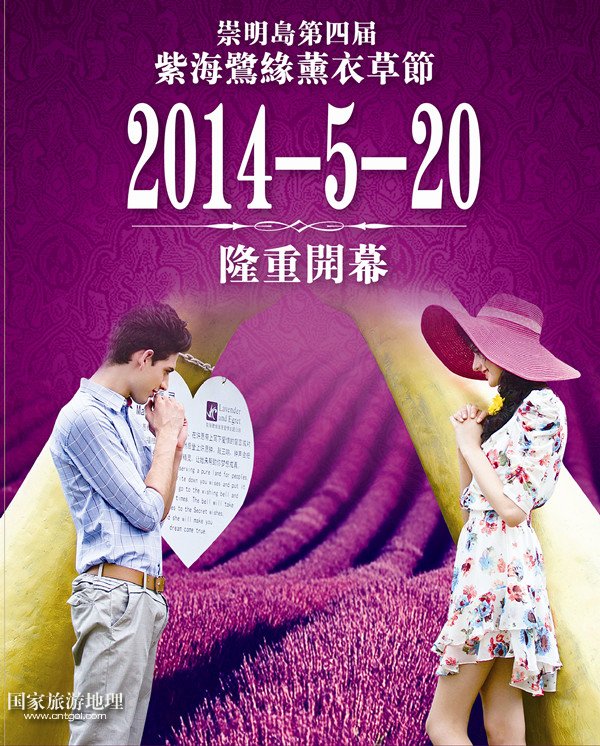 5月20日至6月20日,為期1個月的2014上海崇明島第四屆薰衣草節(jié)將在崇明島舉行,市民不用去法國普羅旺斯就可欣賞到紫色花海的美景了。此次活動地點設(shè)在中國最美麗的“花園”——上海崇明島上的香草種植園紫海鷺緣浪漫愛情主題公園內(nèi)。